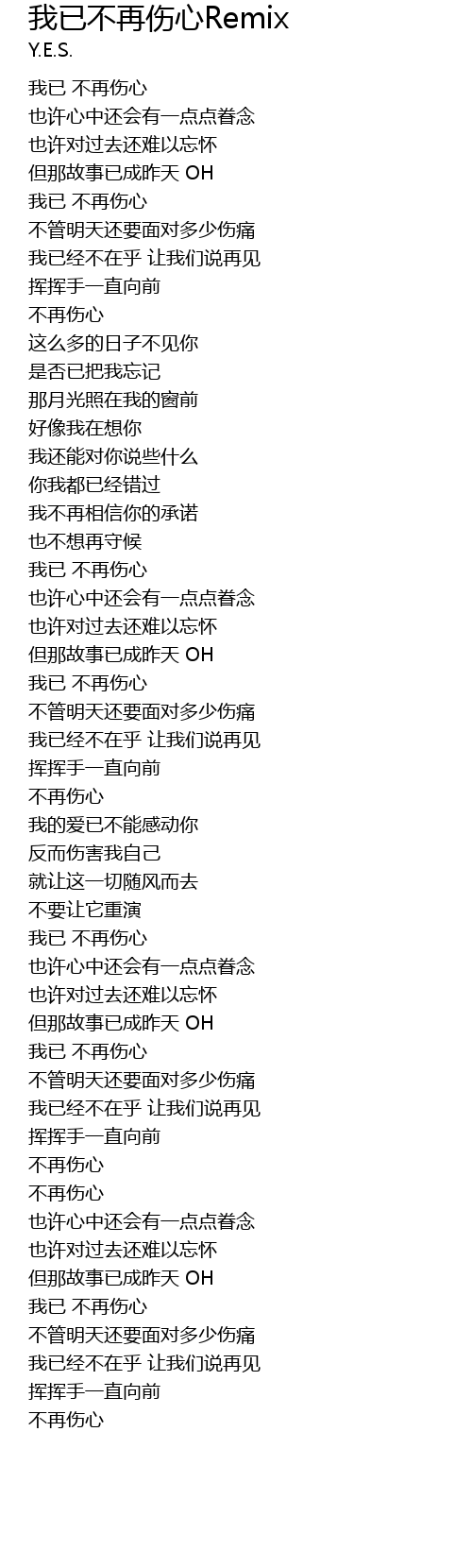 | Song | 我已不再伤心Remix |