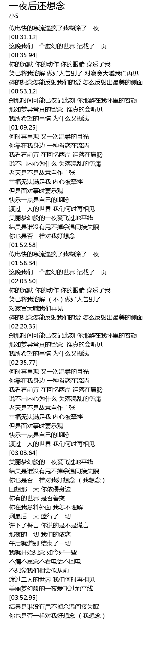 | [03:53.77] | 结果是谁没有甩不掉余温间接失眠 |