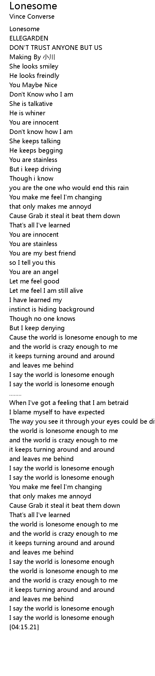 | [01:36.52] | Cause the world is lonesome enough to me |