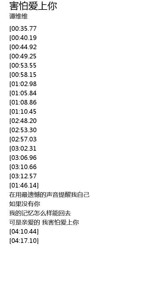 | [04:00.10] | 可是亲爱的 我害怕爱上你 |