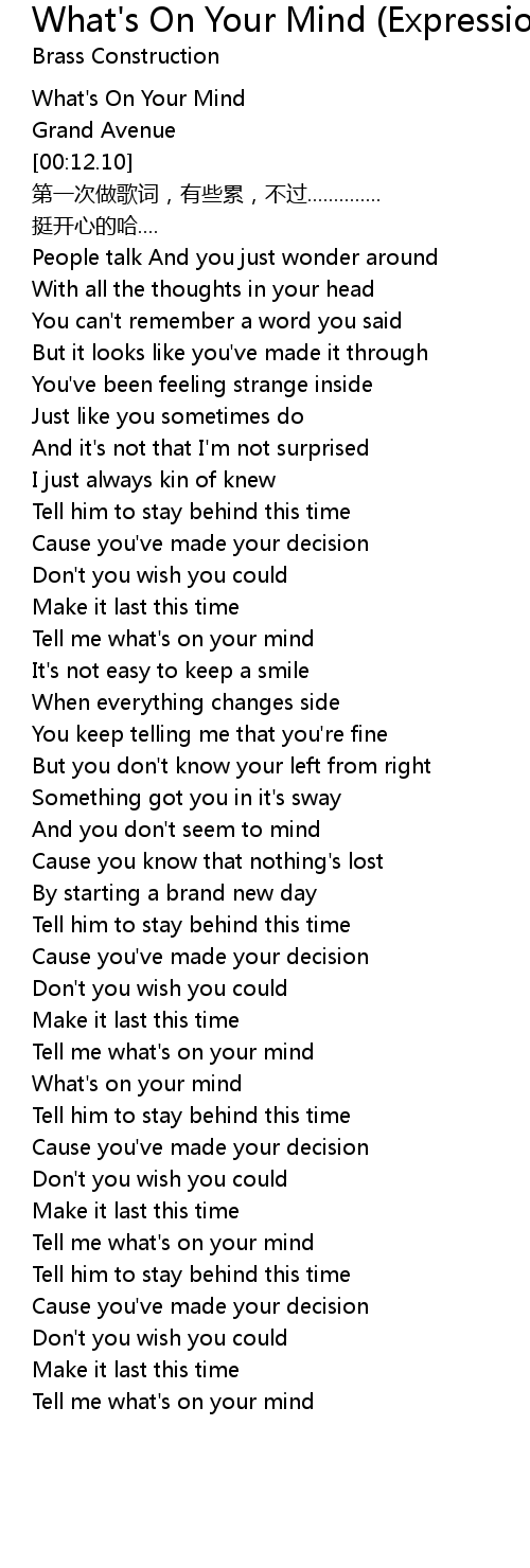 | [00:02.54] | What's On Your Mind |