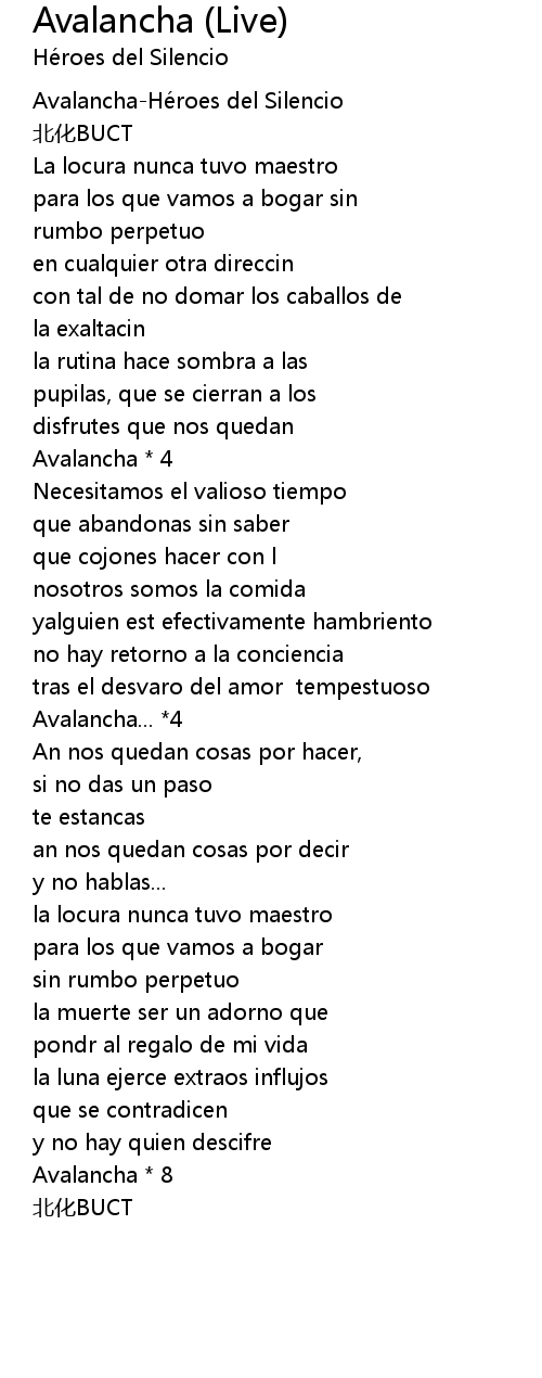 | [00:00.00] | AvalanchaHe roes del Silencio |