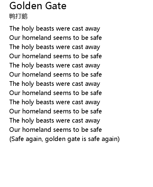 | [04:10.14] | (Safe again, golden gate is safe again) |