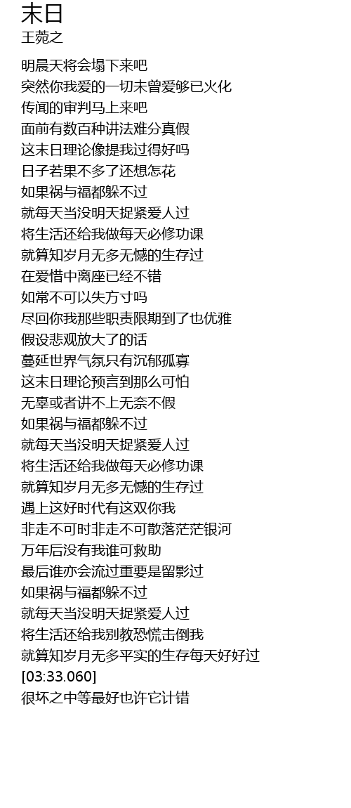 | [03:23.930] | 就算知岁月无多平实的生存每天好好过 |