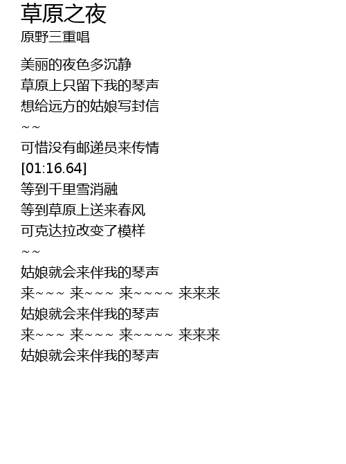 | [03:00.03] | 姑娘就会来伴我的琴声 |