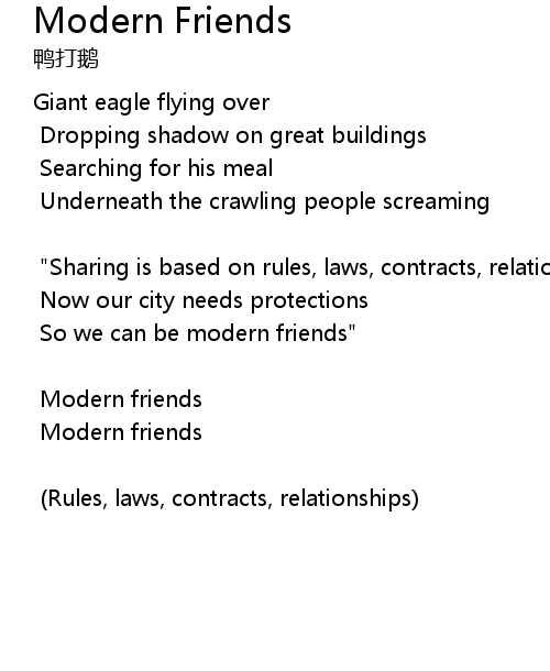 | So we can be modern friends" | |