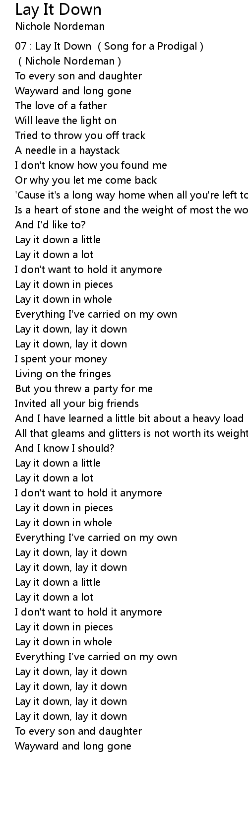 | [00:00.00] | 07 : Lay It Down (Song for a Prodigal) |