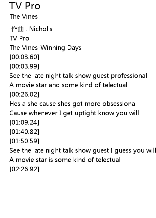 | [00:02.53] | The Vines-Winning Days |
