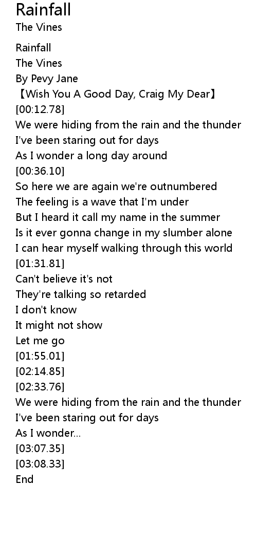 | [00:17.65] | We were hiding from the rain and the thunder |