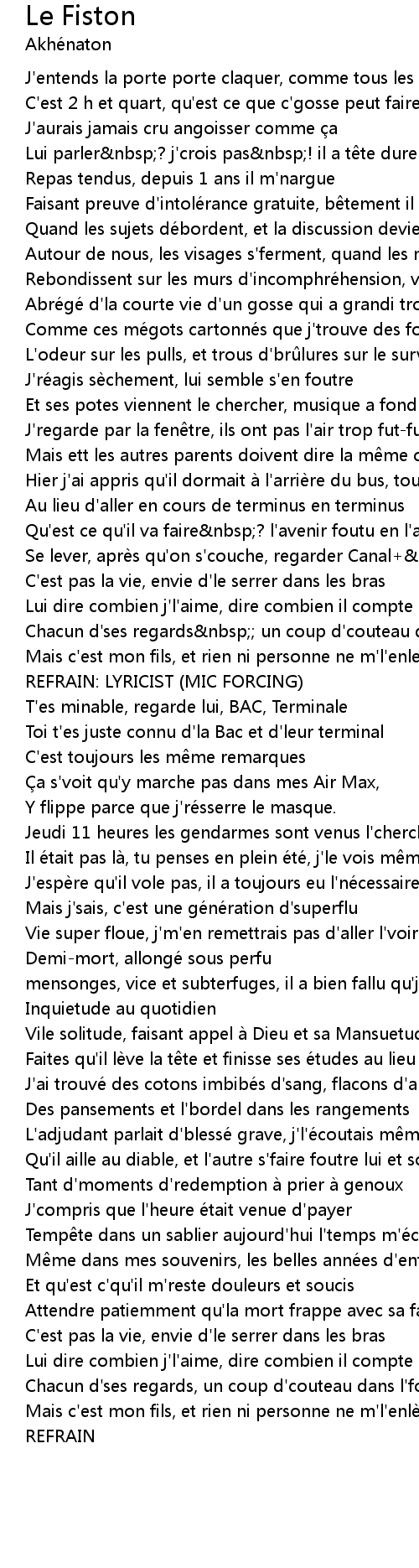 | Toi t'es juste connu d'la Bac et d'leur terminal | |