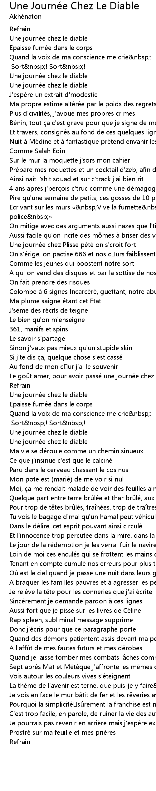 | Le goût amer, pour avoir passé une journée chez l'diable | |