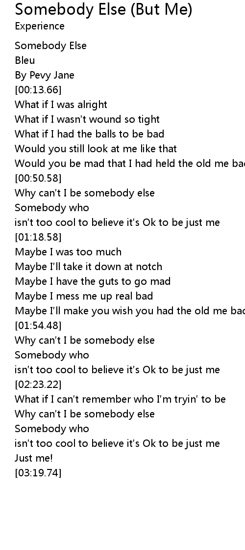 | [00:52.21] | Why can t I be somebody else |