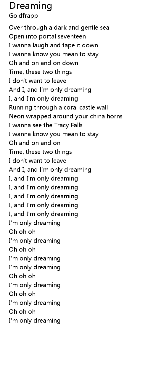 And I, and I'm only dreaming |
