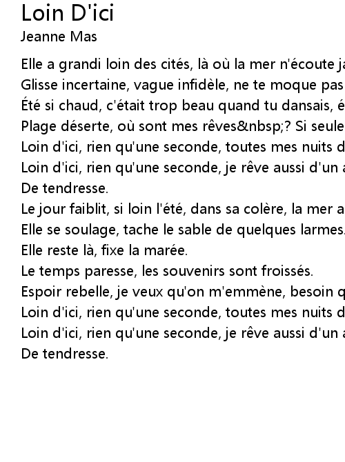 | Loin d' ici, rien qu' une seconde, je r ve aussi d' un autre monde | |