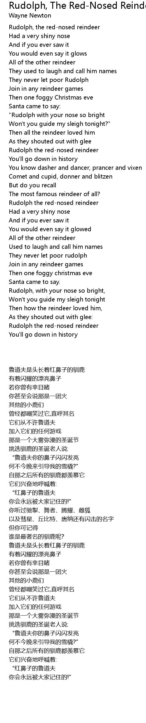 Rudolph, The Red-Nosed Reindeer Lyrics