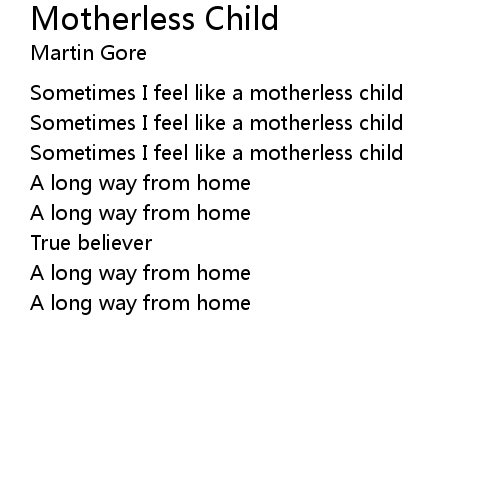 | Sometimes I feel like a motherless child | |