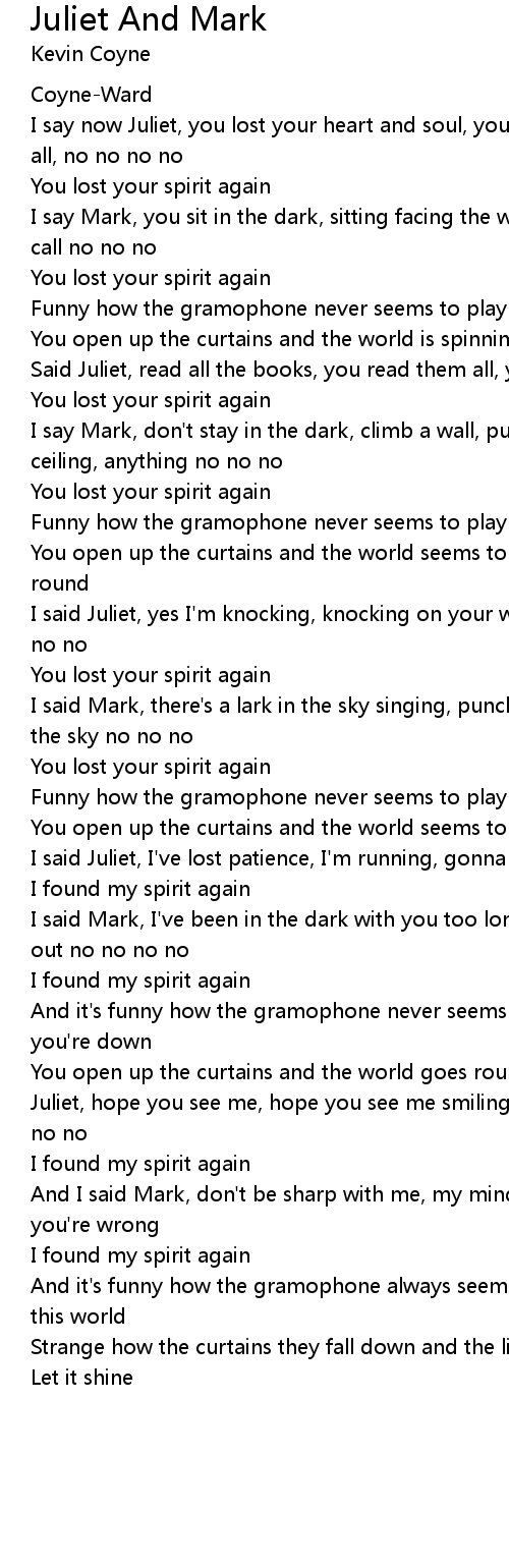 I say now Juliet, you lost your heart and soul, you don't believe in a thing at all, no no no no |
