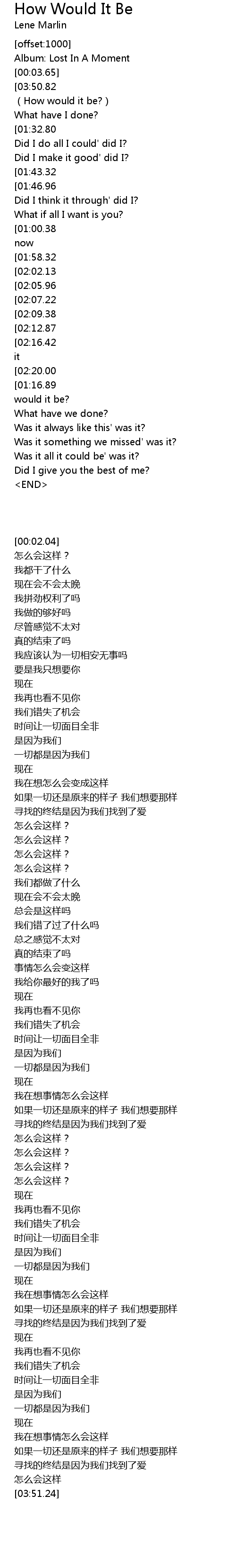 | [00:22.03][01:32.80] | What if it's too late now? |