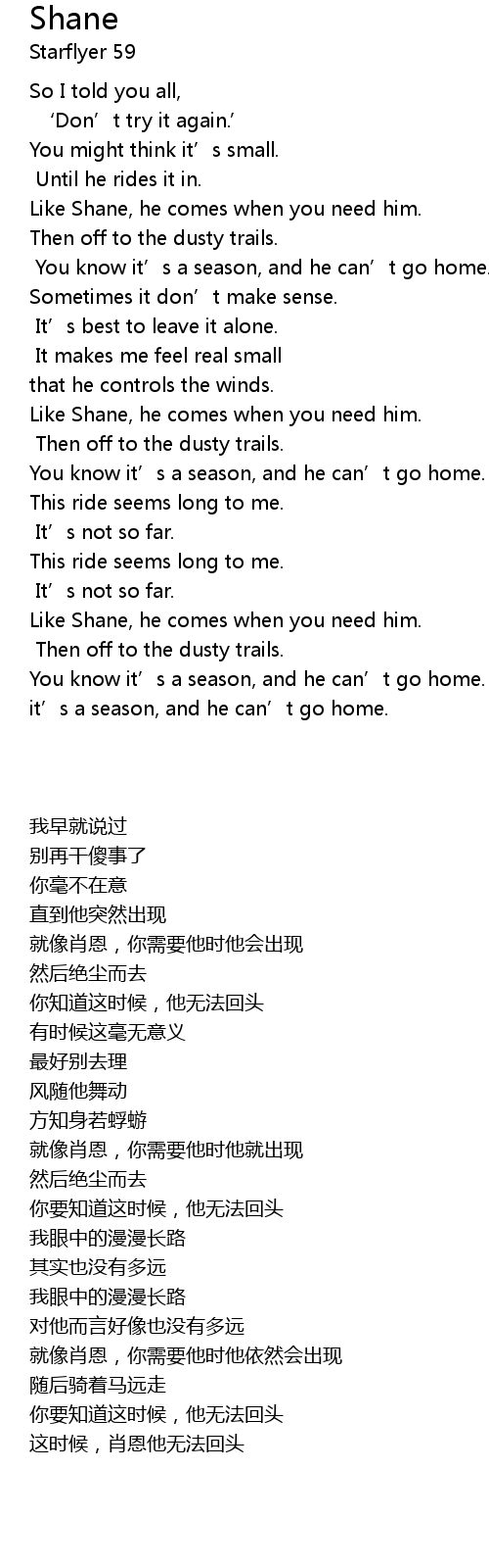 | Song | Shane |