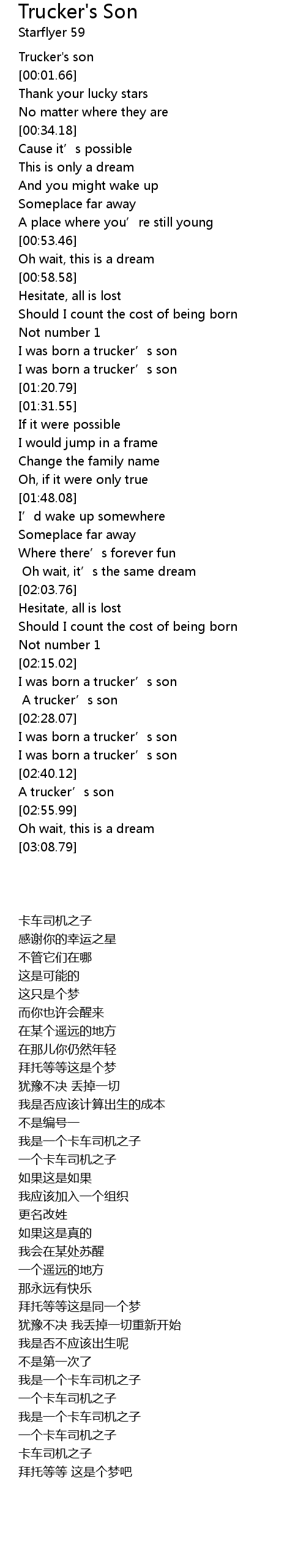 | [02:53.11] | A trucker' s son |