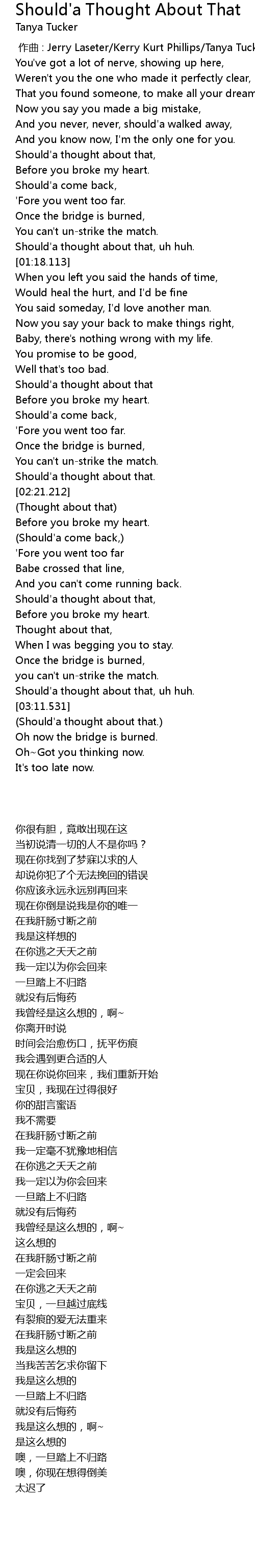 | [01:13.841] | Should' a thought about that, uh huh. |