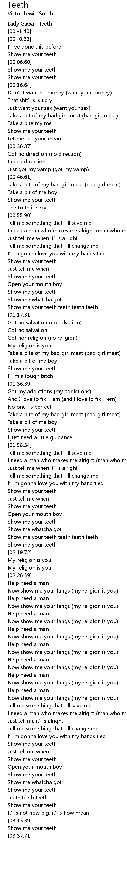 | [02:14.82] | Show me your teeth teeth teeth teeth |