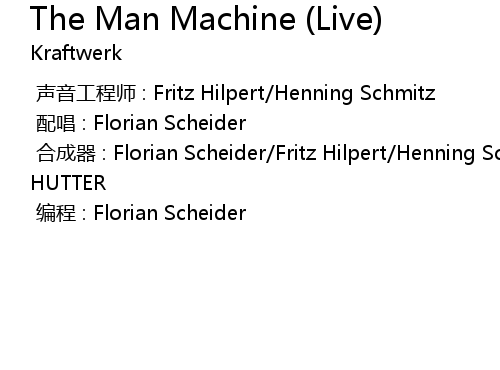 | [00:00.000] | 合成器 : Florian Scheider/Fritz Hilpert/Henning Schmitz/RALF HUTTER |