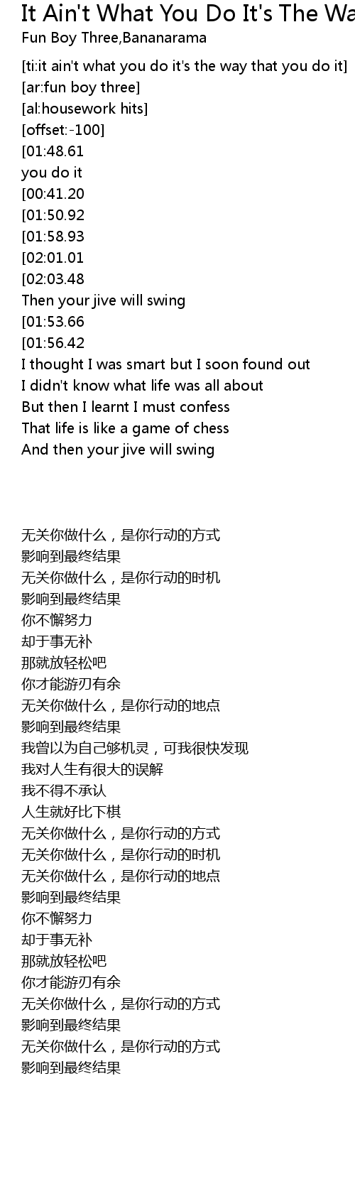 [00:33.20][01:50.92] It ain't what you do it's the time that you do it