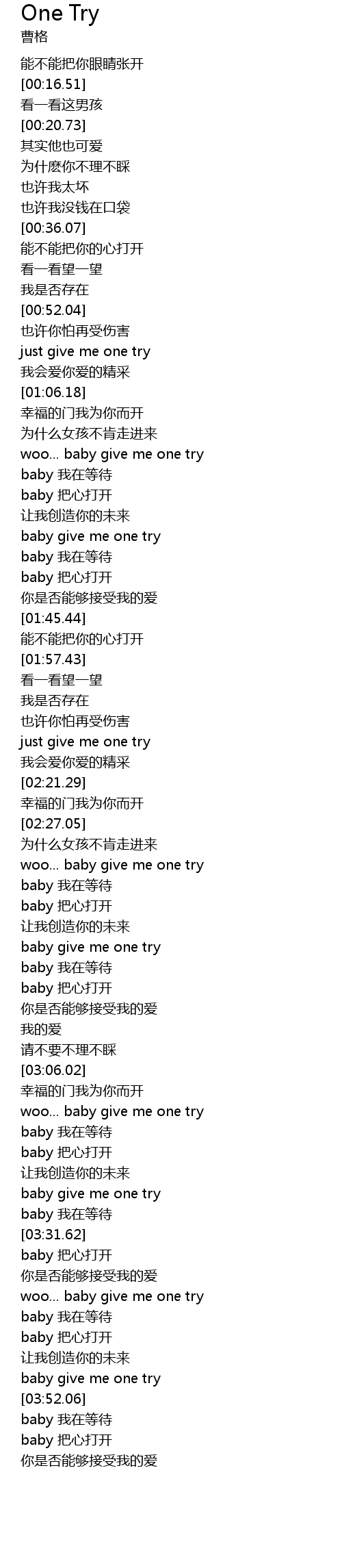 | [03:55.54] | baby bǎ xīn dǎ kāi |