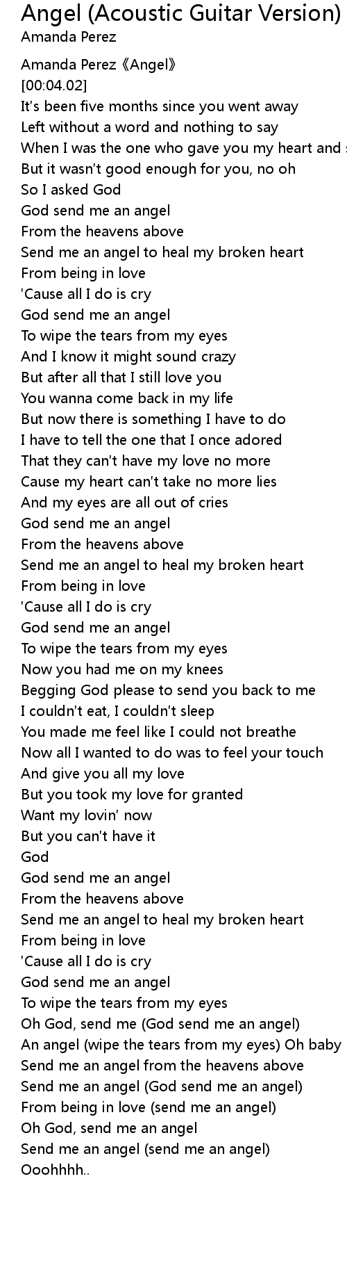 | [01:35.69] | Send me an angel to heal my broken heart |