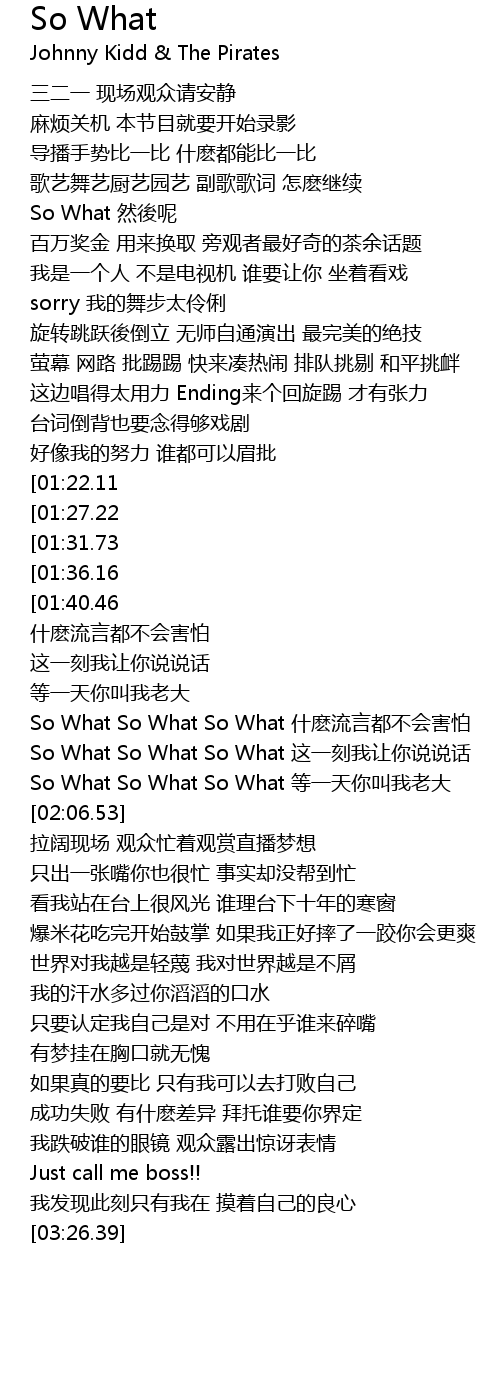 | [02:51.57][01:27.22] | So What So What So What 两手空空打我的天下 |
