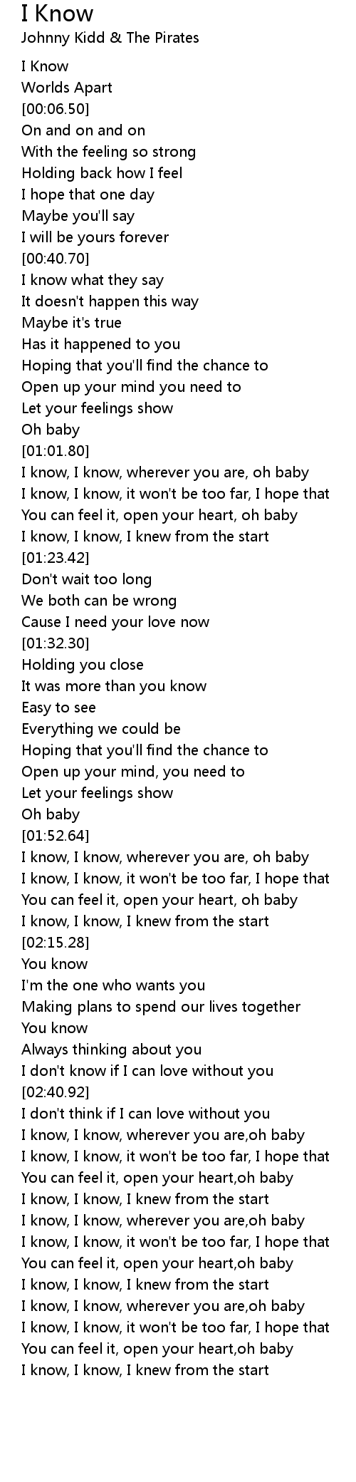 I Know Lyrics