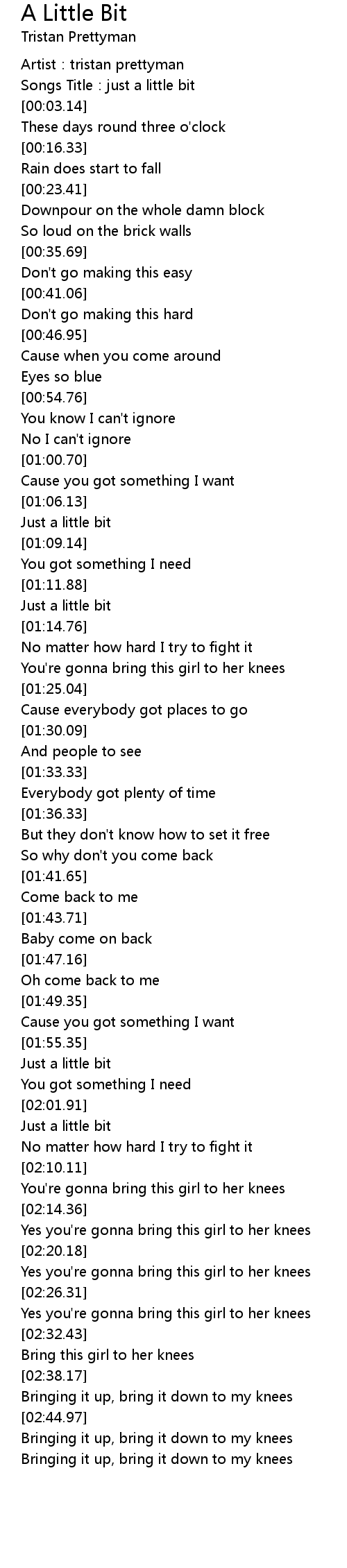 | [02:22.37] | Yes you' re gonna bring this girl to her knees |