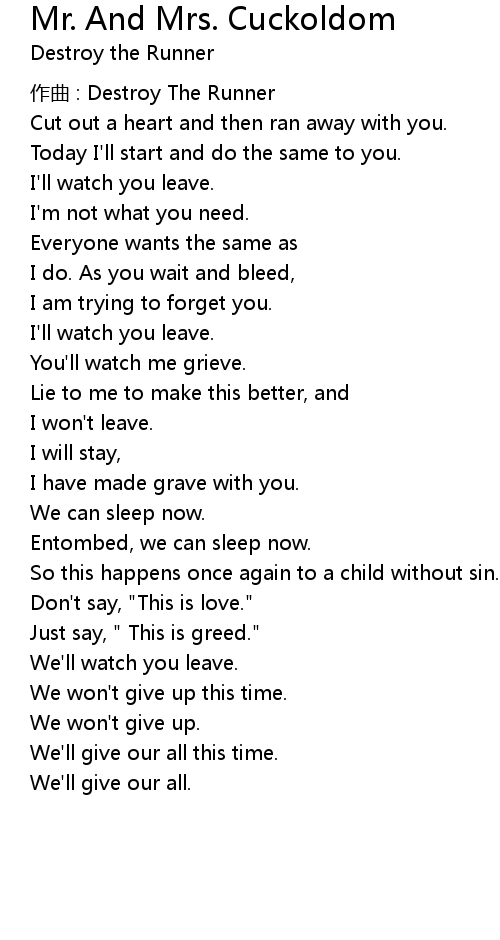 | Song | Mr. And Mrs. Cuckoldom |