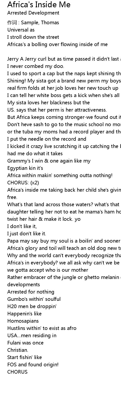 | Africa' s inside me taking back her child she' s giving me my pride and setting me free. | |
