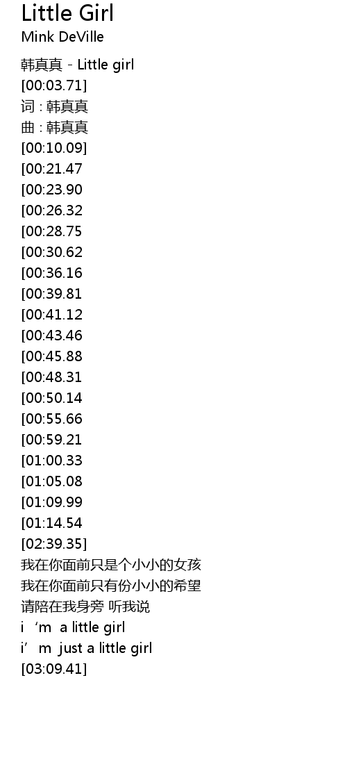| [00:01.12] | 韩真真 - Little girl |