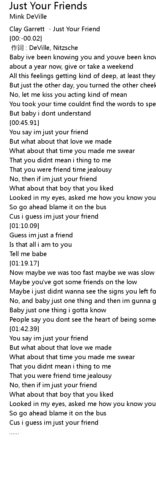 | [00:-07.52] | Clay Garrett Just Your Friend |