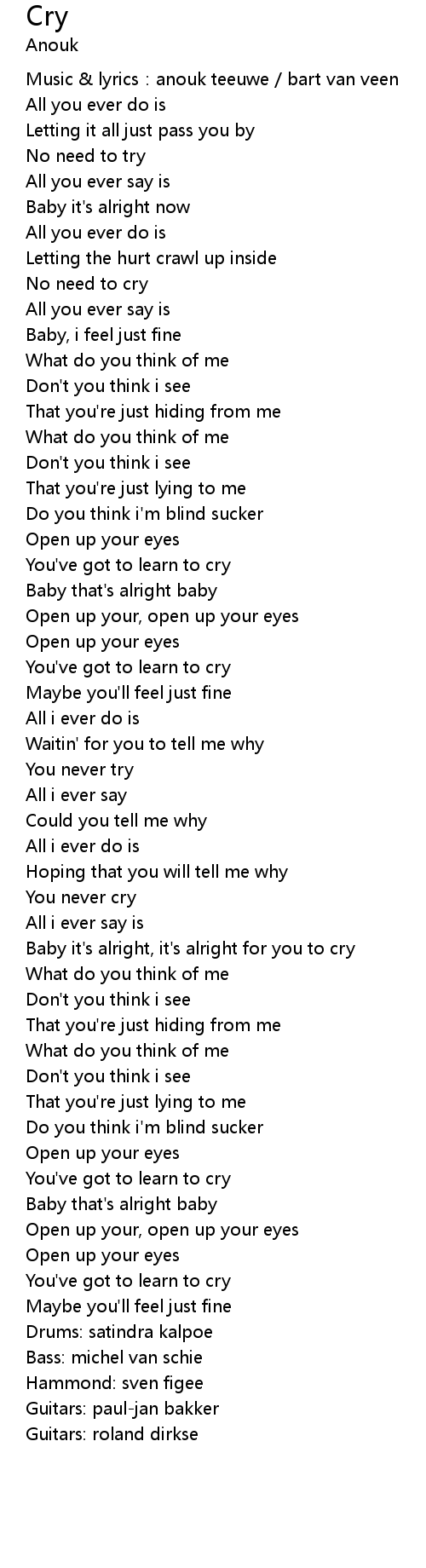 | Baby it's alright, it's alright for you to cry | |