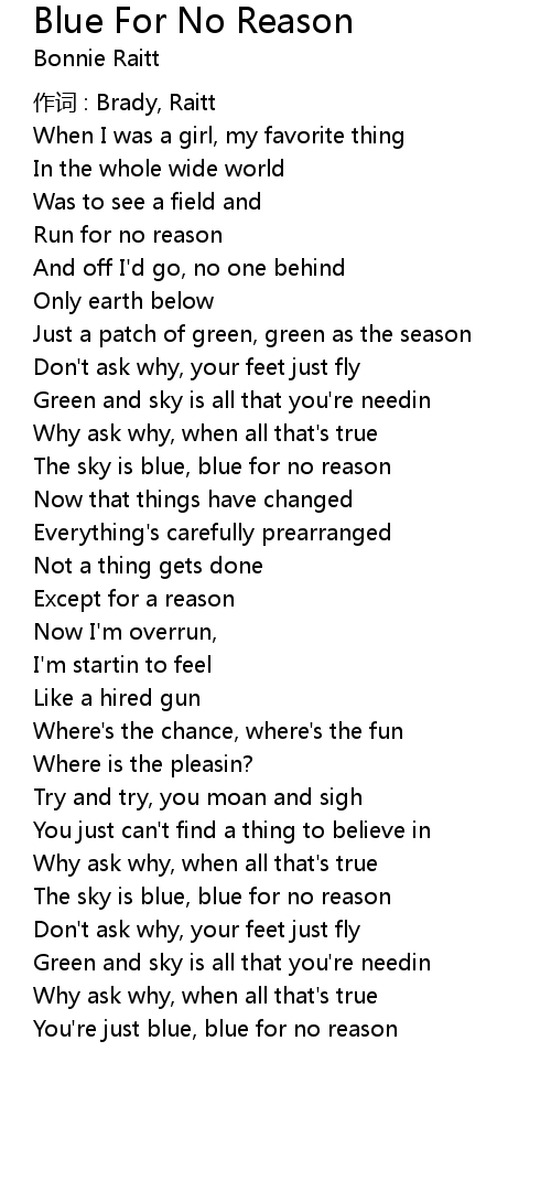 | You' re just blue, blue for no reason |