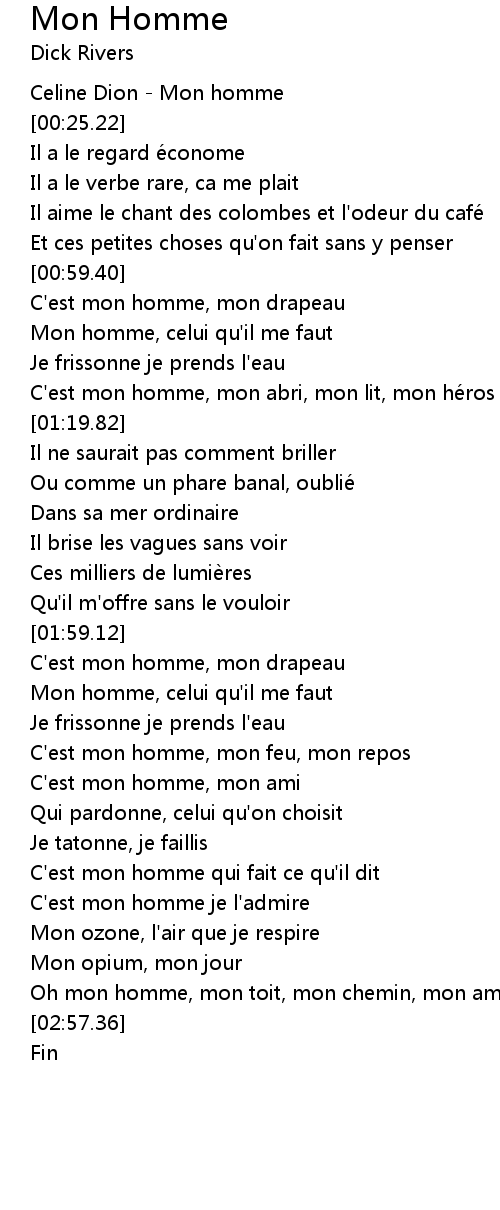 | [00:00.00] | Celine Dion - Mon homme |