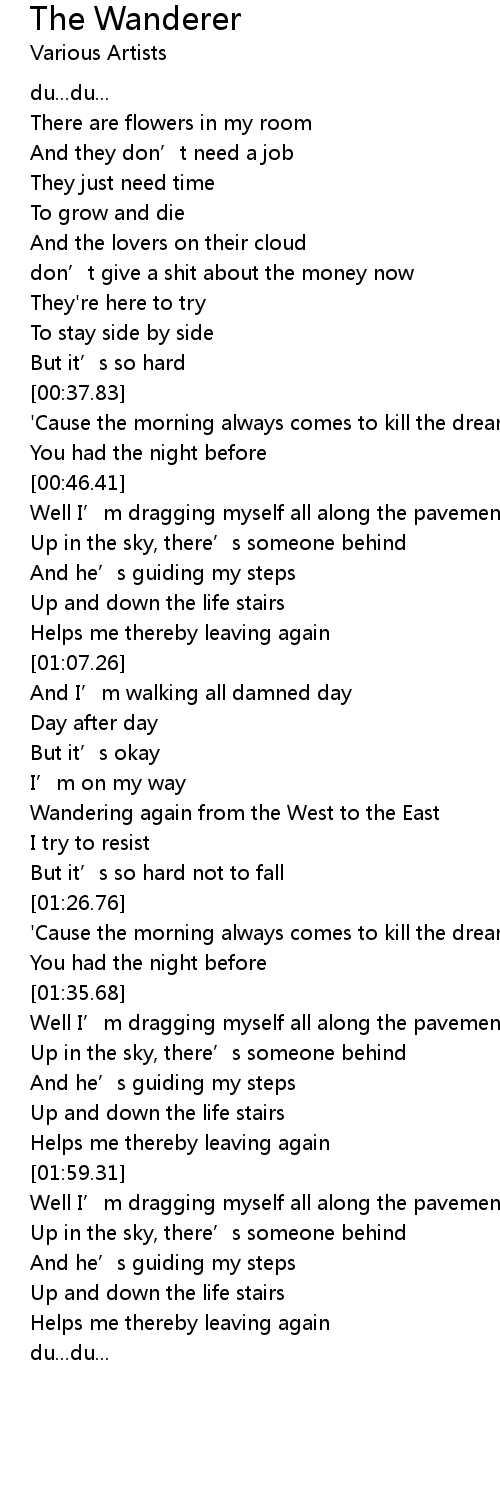 | [01:36.05] | Well I' m dragging myself all along the pavement |