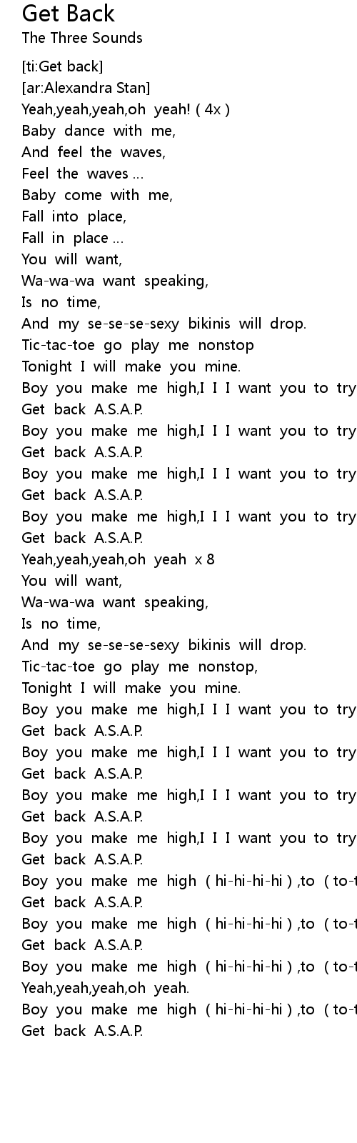| [01:35.283] | Get back A.S.A.P. |