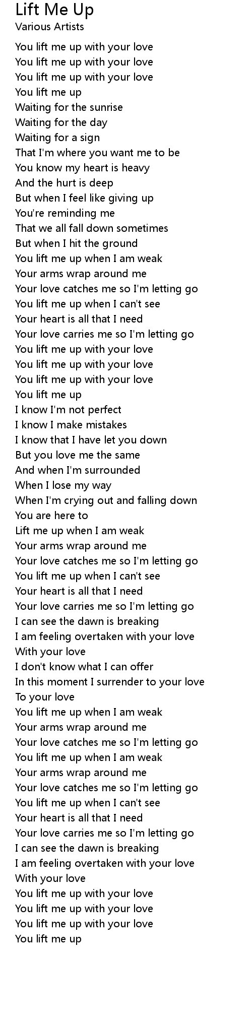Lift me up when I am weak |