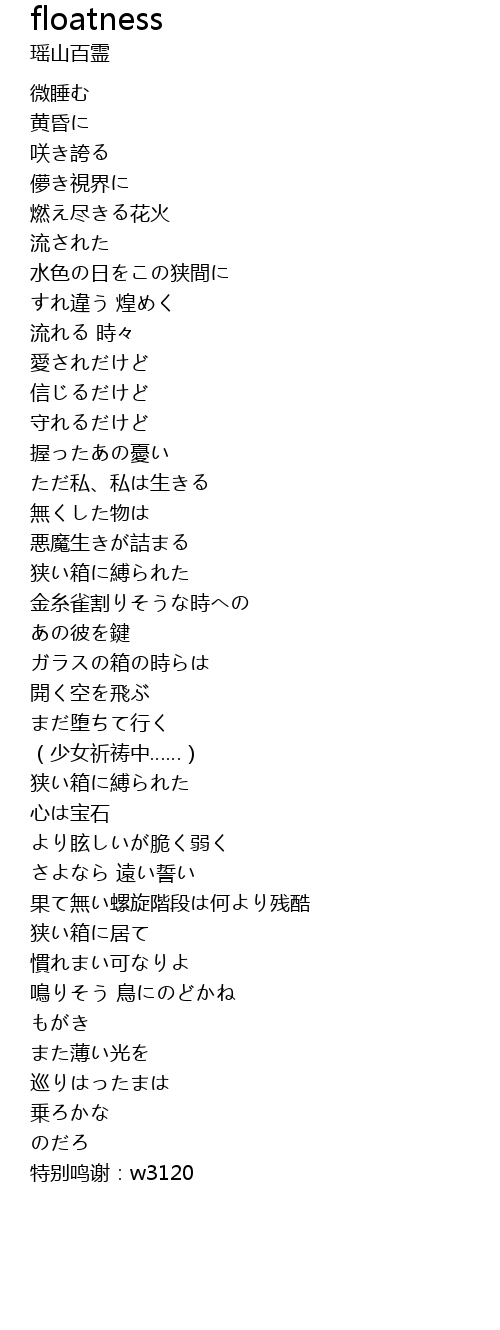 | [01:26.16] | 水色の日をこの狭間に |