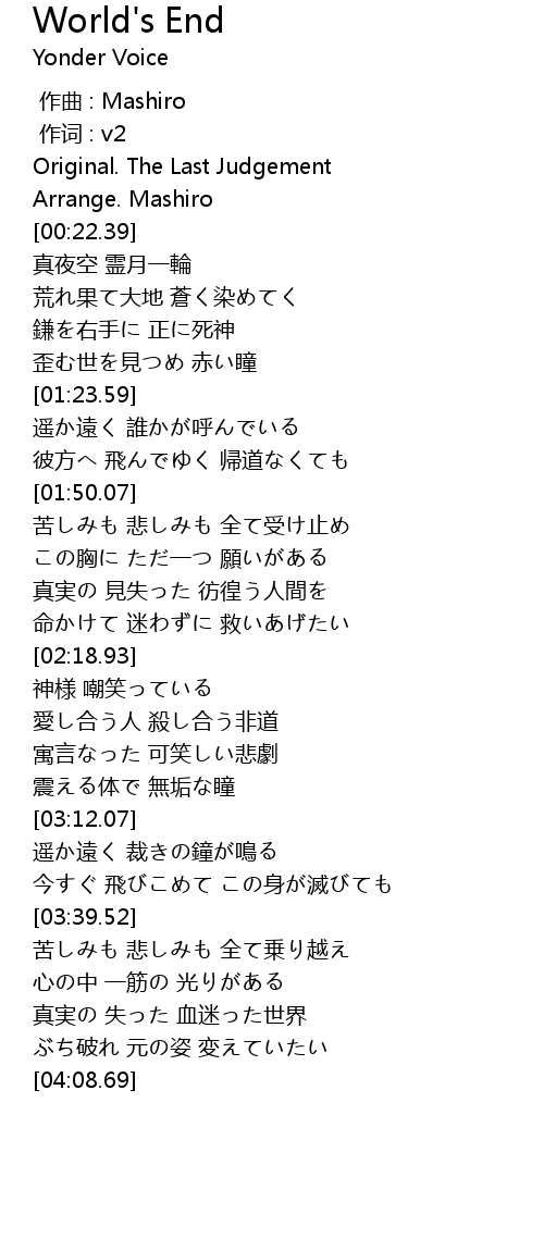 | [03:55.28] | 真実の 失った 血迷った世界 |
