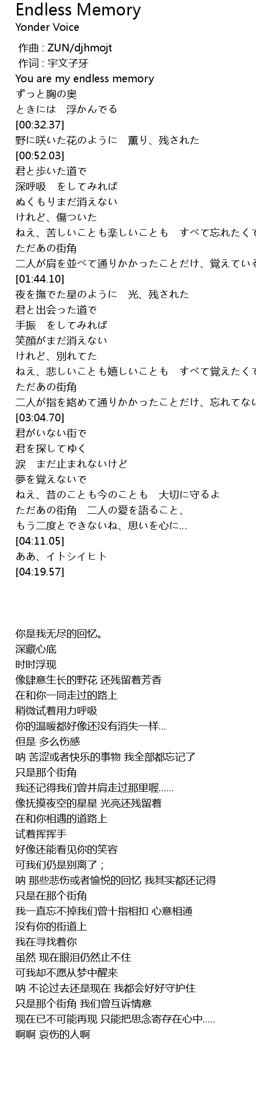 | [00:17.06] | You are my endless memory |