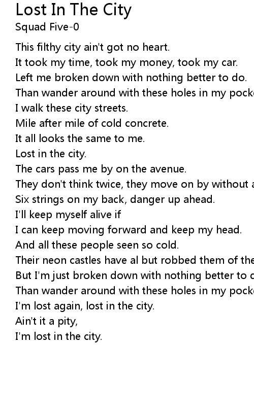 I'm lost again, lost in the city. |