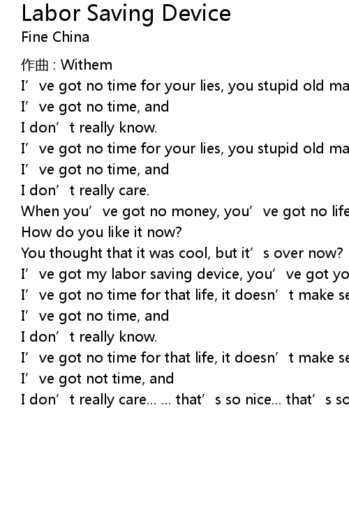 | Song | Labor Saving Device |