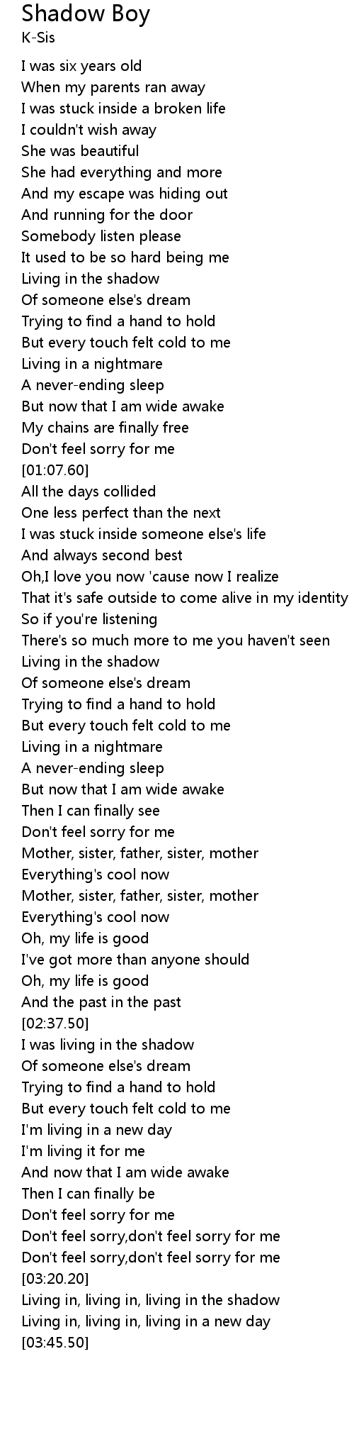 | [01:45.20] | Living in the shadow |