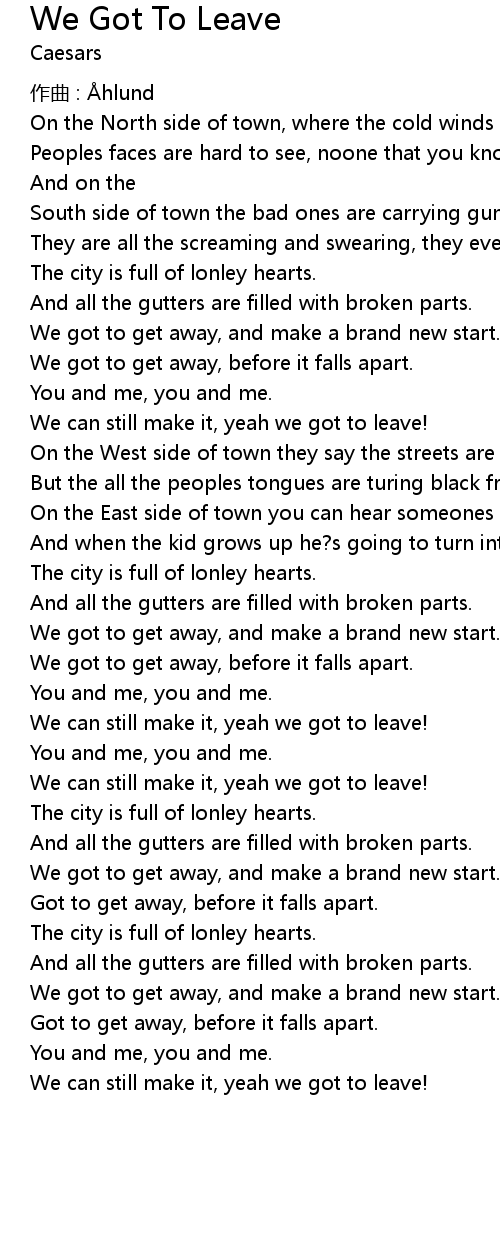 | Song | We Got To Leave |